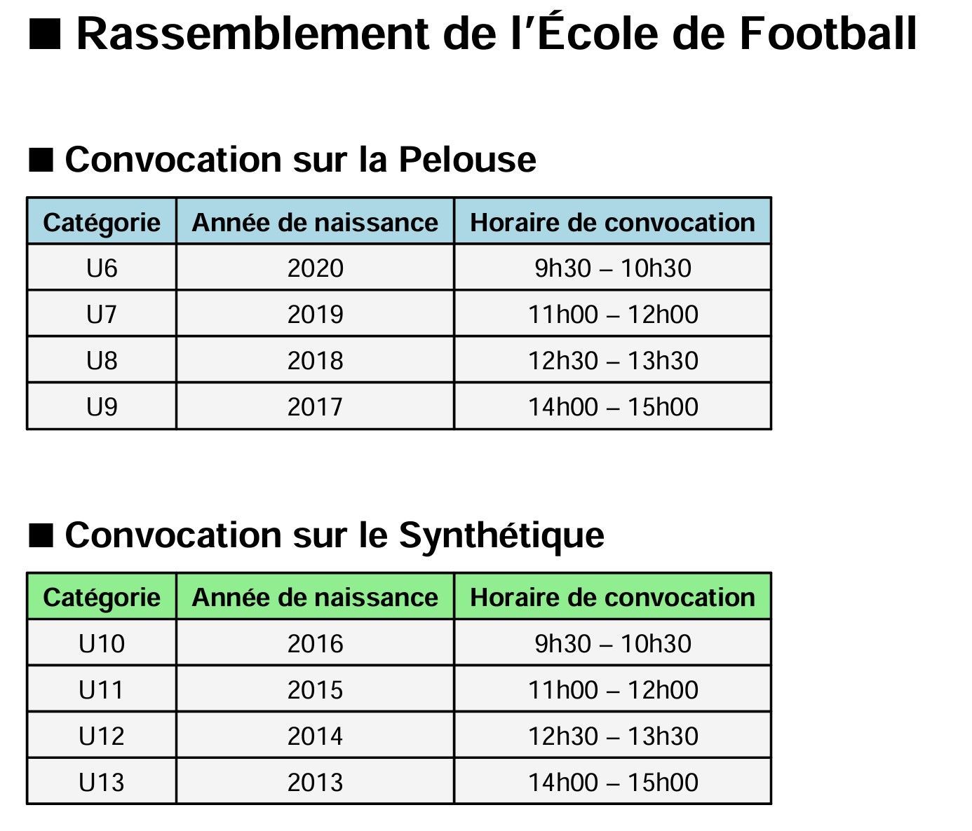 Pour les personnes inscrites sur liste d'attente uniquement vous êtes convoqué le Samedi 13 Septembre 2025 selon l'âge et l'année de naissance de votre enfant.